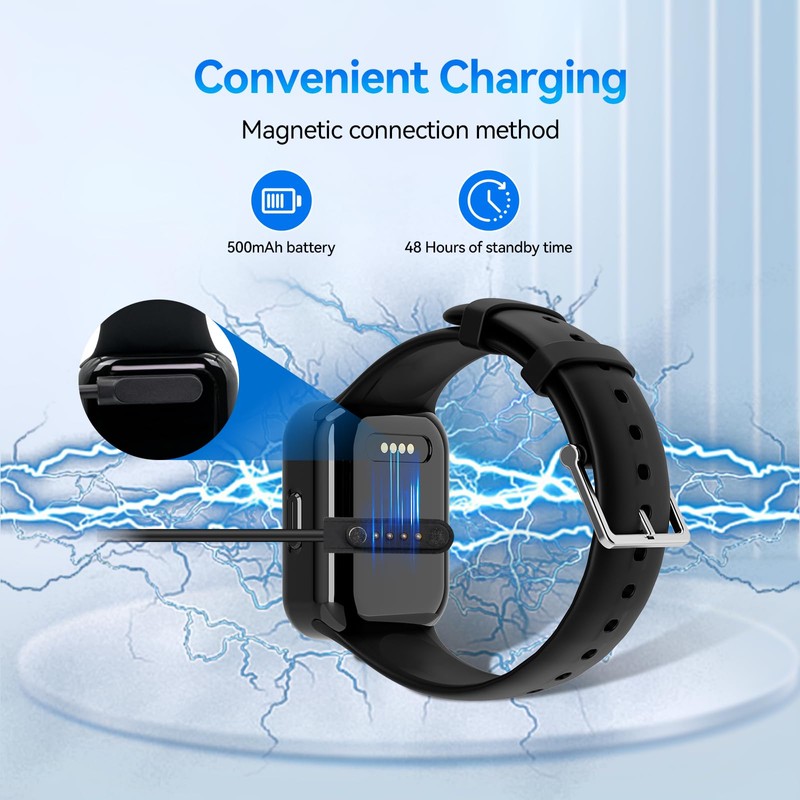 - Easy charging; watch receiver features magnetic charging; simply align charger and watch receiver; ensures a secure and fast connection every time