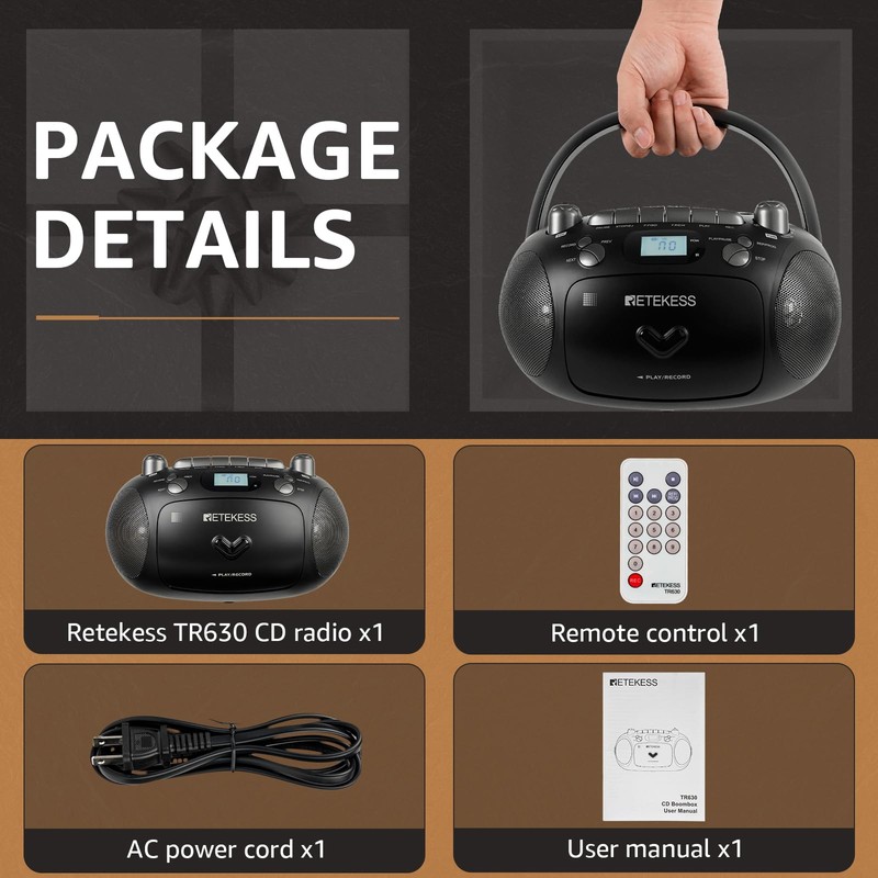 • Multiple and complete functions; CD/tape/U disk(up to 32G)/TF card(up to 32G) playback optional; CD playback compatible with CD/MP3/WMA; enjoy music anytime and anywhere