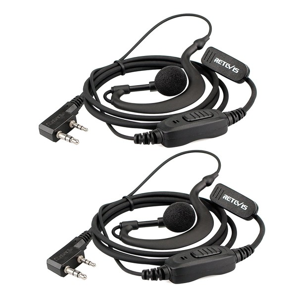 Retevis 2 Way Radio Earpiece, C-Type Earhook, 2 Pin, for RT22 RT68 RT21 H777H H-777 RT86A, Compatible with Pxton BAOFENG BF-T26 BF-888S Kenwood Walkie Talkies, Walkie Talkie Earpiece with mic(2 Pack)