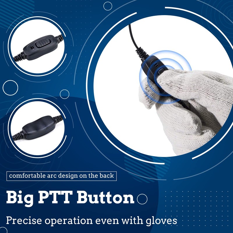- Large PTT button; two way radio headset with large PTT button design; no matter what situation can achieve easy and precise operation