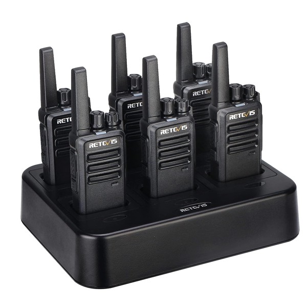 Retevis RT68 Walkie Talkies Rechargeable, Portable Two Way Radios 6 Pack with Six-Way Multi Gang Charger, Heavy Duty Walkie Talkie for Adults, Hands Free, Long Range, for School Restaurant Farm