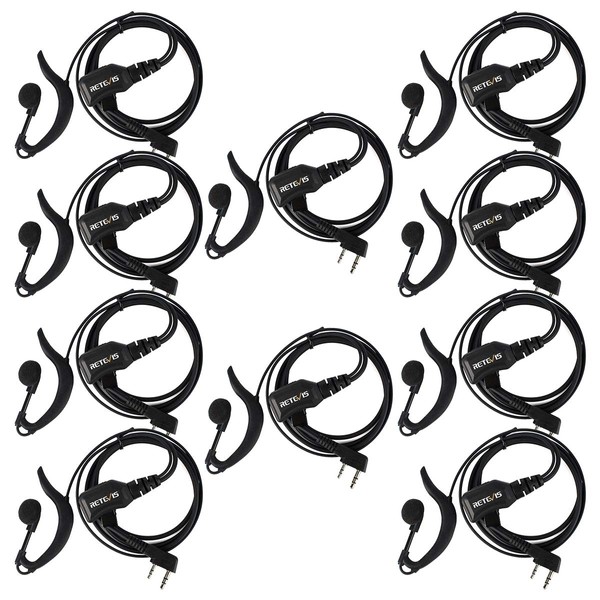 Retevis Walike Talkie Earpiece with Mic G Shape 2 Pin Adjustable Volume Headset for Retevis H-777 RT22 RT21 Baofeng UV-5R 888S 2 Way Radio (10 Pack)