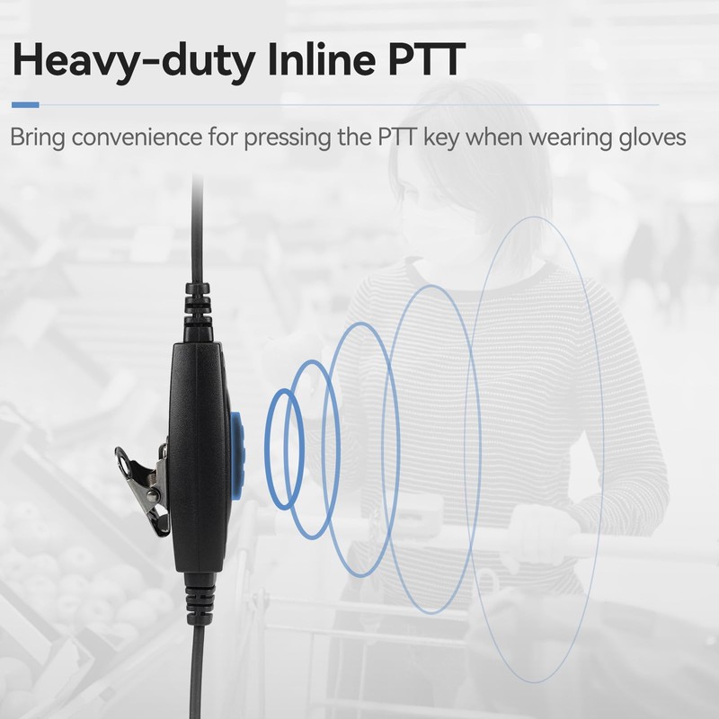 - Uses breakout PTT design to increase the sense of press; operating walkie talkie headphones with mic conveniently when wearing gloves