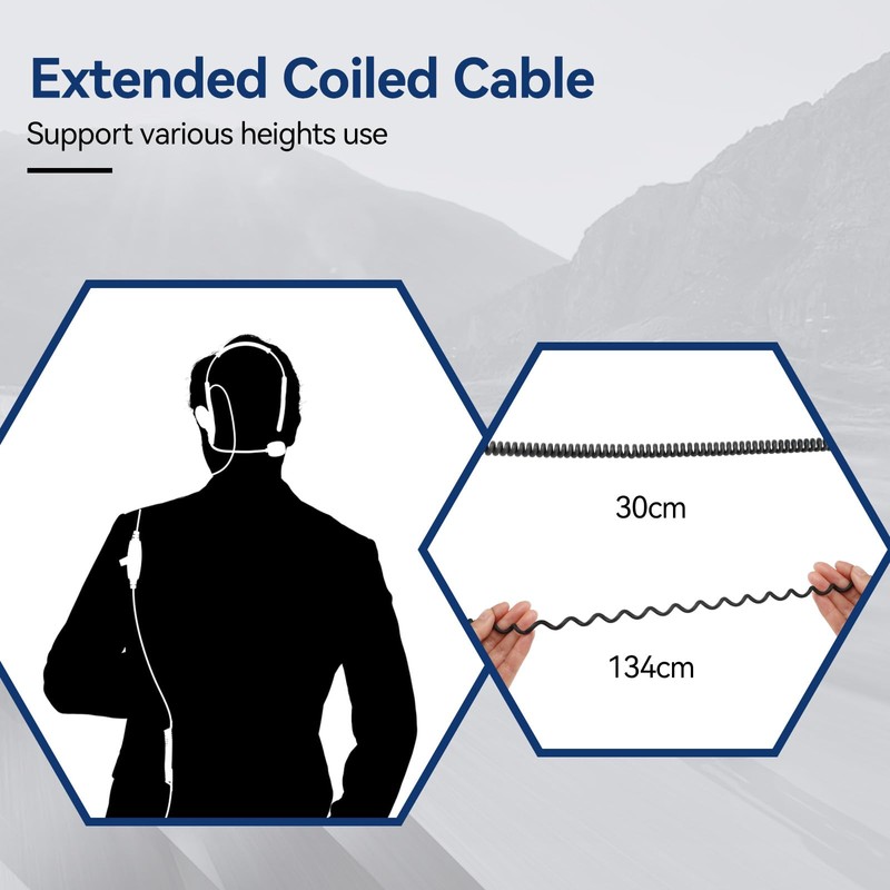 - Adjust the cable length based on the users' height; making it flexible to use a two way radio headset with mic