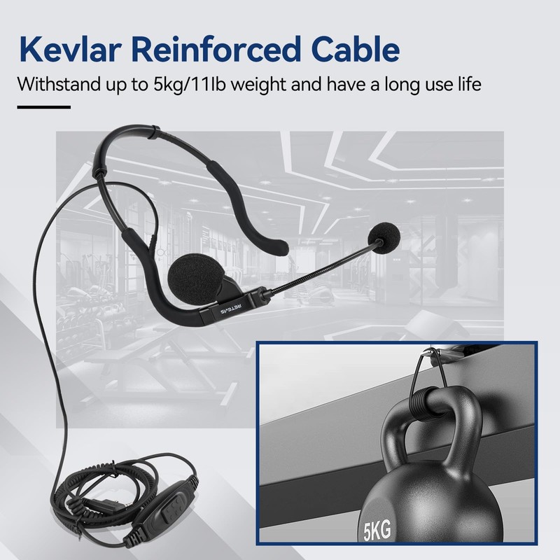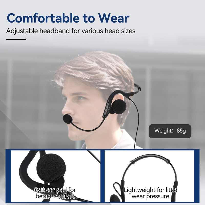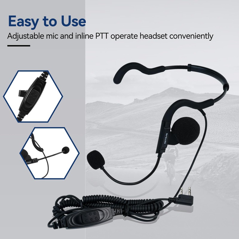 Retevis Walkie Talkie Headset, Behind Head Earpiece, Adjustable Headphone with Boom Mic, Compatible with Baofeng UV-5R eSynic RT24 RT27 RT85 RT86 2 Way Radio Headset (1 Pcs)