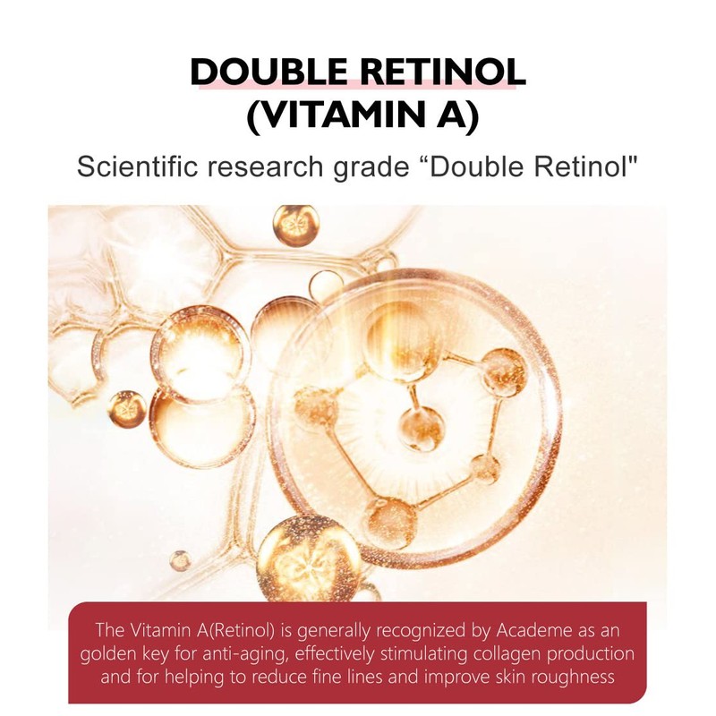 - Anti-Aging Serum: Our retinol face serum is a powerful blend of vitamins A, C, and E, along with hyaluronic acid and jojoba oil. The retinol face cream helps to diminish the appearance of fine lines, wrinkles, age spots, dark circles, and sun damage while promoting a radiant, youthful complexion