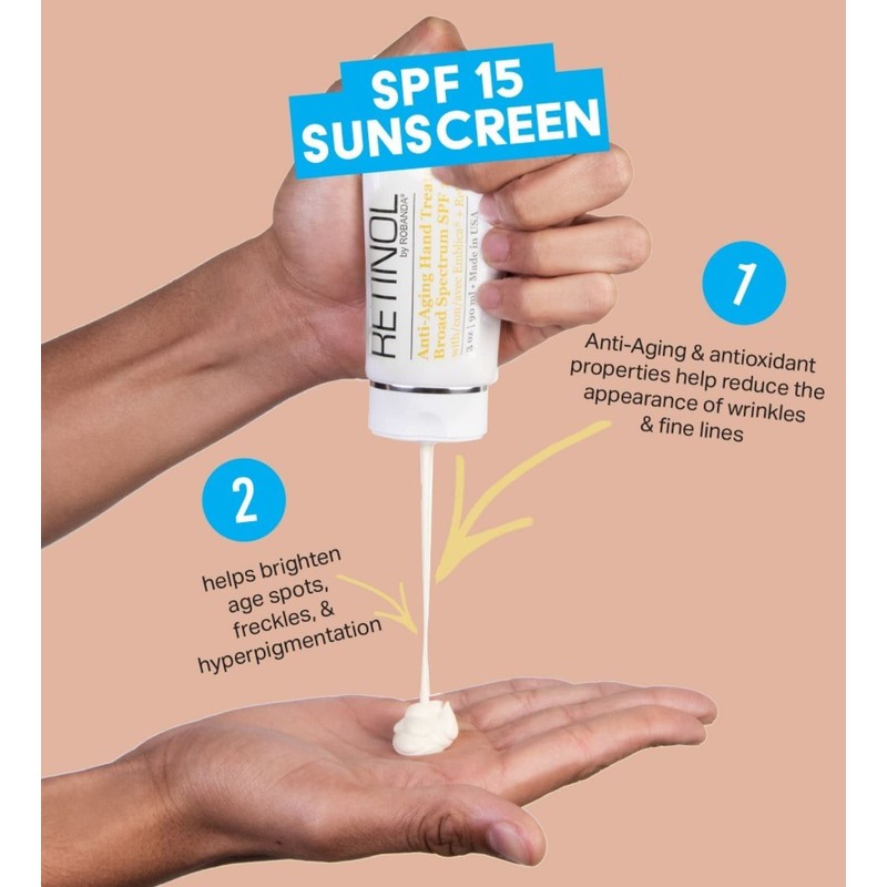 Robanda Retinol Anti-Aging Hand Treatment │ Broad Spectrum SPF 15 + Retinol Cream to Repair Dry Skin, 2 pack
