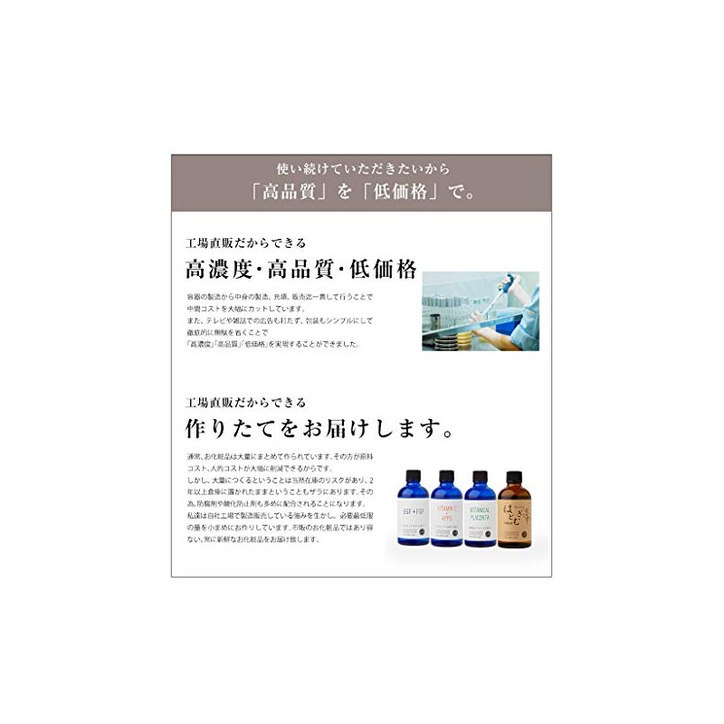 • High concentration and low prices by consistently manufacturing at our own factory in Japan
