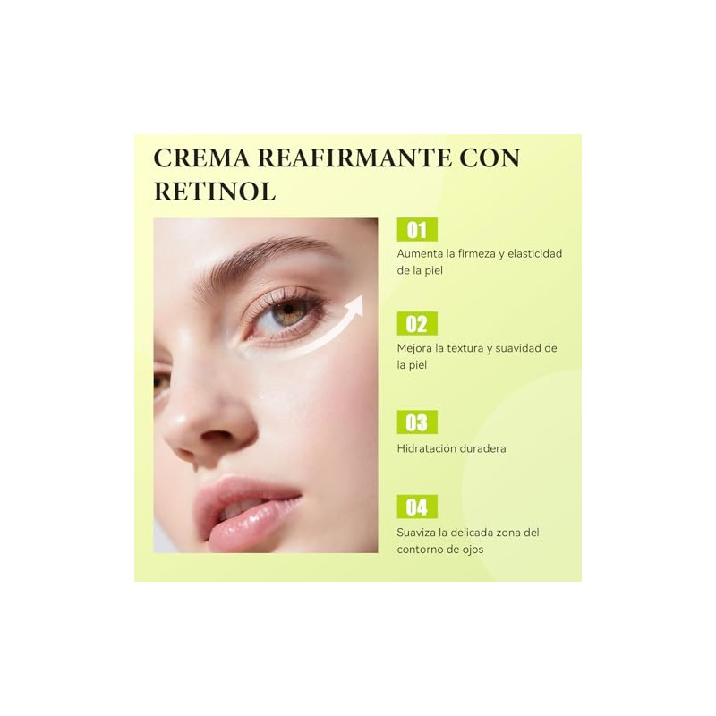 Acerca de este artículo Reafirma la piel: Este retinol shot tightening serum enriquecido con retinol altamente activo, penetra directamente en los poros y mejora su absorción, liberando el retinol profundamente en la piel. Reduce eficazmente la apariencia de arrugas y poros dilatados, dejando la piel más suave, firme y joven. Suave y no irritante: Esta retinol shot tightening booster con una fórmula suave y respetuosa con la piel que conserva los beneficios del retinol y minimiza la irritación en la delicada zona de los ojos. Ya sea que tengas piel seca, grasa, mixta o sensible, esta retinol shot tightening serum reduce eficazmente el enrojecimiento, la hinchazón y otras molestias, protegiendo delicadamente la delicada zona de los ojos. Ligera y de fácil absorción: Esta retinol shot tiene una textura ligera y sedosa que se absorbe rápidamente sin necesidad de masajear repetidamente, sin dejar residuos pegajosos y con una hidratación duradera. Sea testigo de la transformación de su piel: el uso continuo de retinol shot tightening serums no solo le ayuda a mejorar los problemas de envejecimiento prematuro, como la piel flácida y las líneas secas, sino que también hace que su piel se sienta notablemente más suave y firme, lo que le permite recuperar fácilmente su confianza y encanto. Recordatorio: Si es la primera vez que usas crema reafirmante con retinol, aplícala cada dos noches durante las dos primeras semanas. Si se produce irritación, reduzca la cantidad y la frecuencia de aplicación y use una crema hidratante con ingredientes calmantes. El retinol puede causar un ligero efecto amarillento en la piel, que puede desaparecer por completo después de la limpieza.