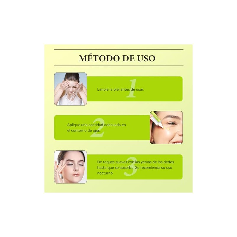 Acerca de este artículo Reafirma la piel: Este retinol shot tightening serum enriquecido con retinol altamente activo, penetra directamente en los poros y mejora su absorción, liberando el retinol profundamente en la piel. Reduce eficazmente la apariencia de arrugas y poros dilatados, dejando la piel más suave, firme y joven. Suave y no irritante: Esta retinol shot tightening booster con una fórmula suave y respetuosa con la piel que conserva los beneficios del retinol y minimiza la irritación en la delicada zona de los ojos. Ya sea que tengas piel seca, grasa, mixta o sensible, esta retinol shot tightening serum reduce eficazmente el enrojecimiento, la hinchazón y otras molestias, protegiendo delicadamente la delicada zona de los ojos. Ligera y de fácil absorción: Esta retinol shot tiene una textura ligera y sedosa que se absorbe rápidamente sin necesidad de masajear repetidamente, sin dejar residuos pegajosos y con una hidratación duradera.