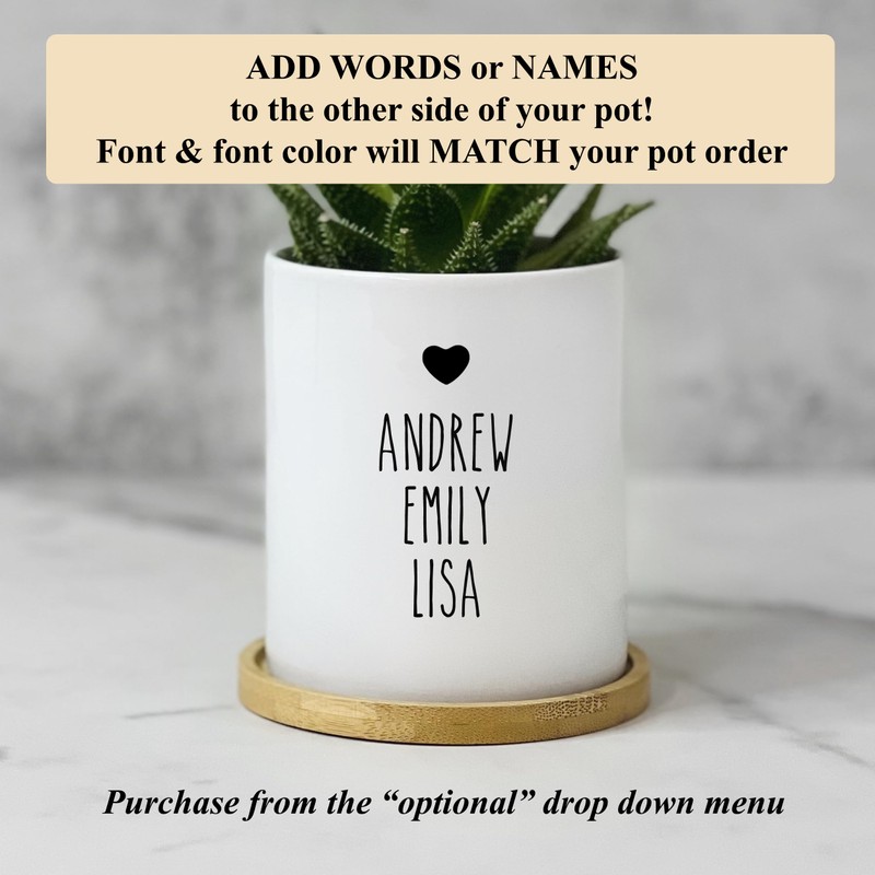 Crafted from premium ceramic with vibrant, long-lasting ink, this customized plant pot features a drainage hole and a bamboo saucer, combining beauty with function. Its minimalist design fits effortlessly with any home or office decor, making it great for succulent pots, cactus pots, small plant pots, or house plant pots. While plants are not included, it’s perfect for adding your favorite succulent plants live, herbs, or flowers — turning it into a truly personal and cherished gift. Ideal for retirement gifts and farewell parties, this flower planter is a lasting symbol of appreciation and new beginnings.