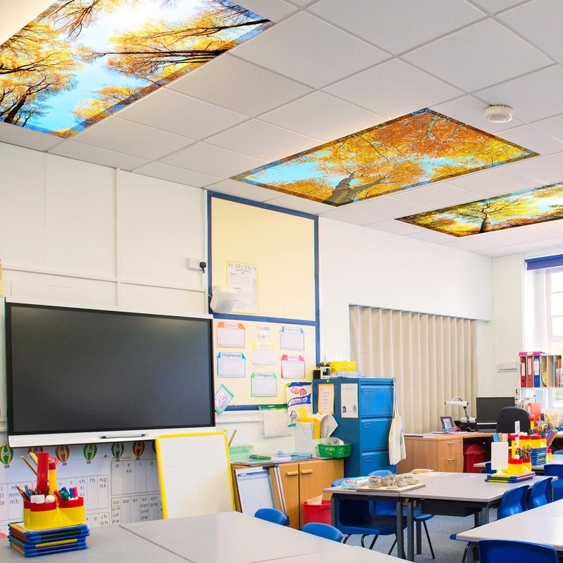 Retisee 16 Pcs Fluorescent Light Covers Led Drop Ceiling Light Decoration for Classroom Office Eliminate Harsh Glare Causing Eyestrain and Headaches (Autumn Forest)