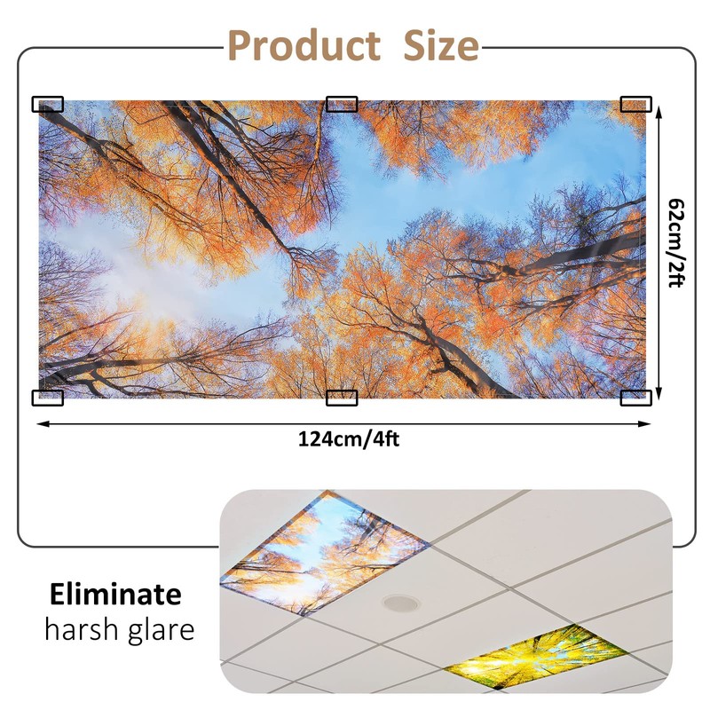 - Easy to Use: our ceiling light cover is a kind of backlight film for traditional fluorescent lights, 6 small magnets are sewn inside each light cover, easy to install, simply attach the light cover to the light fixture; The magnets are magnetic, which can be adsorbed on the light for a long time