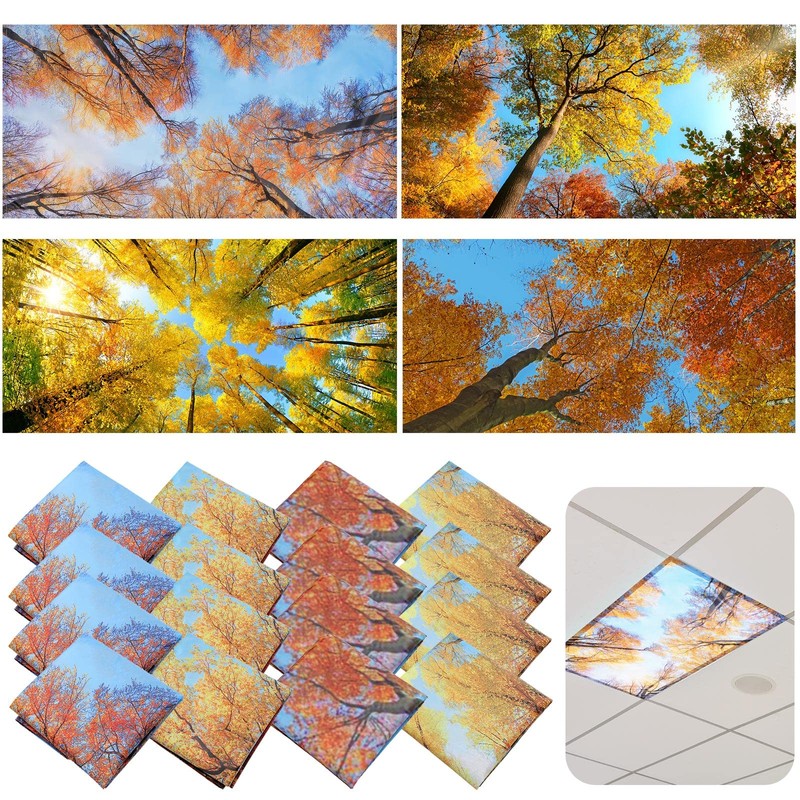 Retisee 16 Pcs Fluorescent Light Covers Led Drop Ceiling Light Decoration for Classroom Office Eliminate Harsh Glare Causing Eyestrain and Headaches (Autumn Forest)