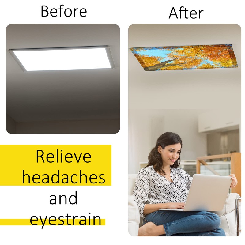 - Easy to Use: our ceiling light cover is a kind of backlight film for traditional fluorescent lights, 6 small magnets are sewn inside each light cover, easy to install, simply attach the light cover to the light fixture; The magnets are magnetic, which can be adsorbed on the light for a long time