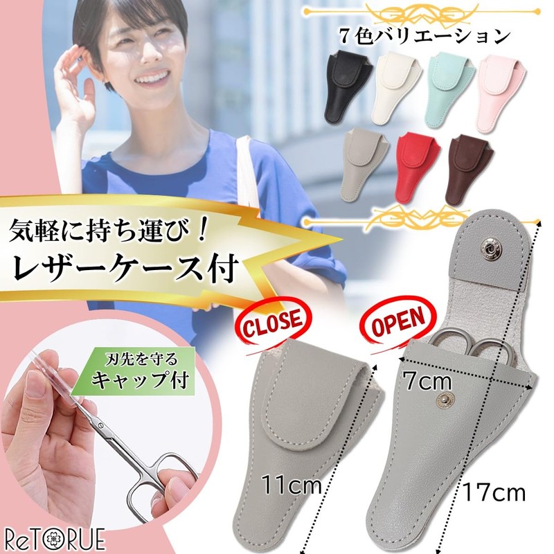 - 7 colors to choose from. Comes with a dedicated leather case & cap for easy carrying: Includes a dedicated cap to protect the edge of the scissors and a luxurious leather-like case. The case is closed securely with a button closure and can be placed in a bag or pouch. Available in 7 different colors, and the fashionable design will increase your mood with each use. It is also perfect for fingertips care when you are on the go or traveling, and it is easy to carry