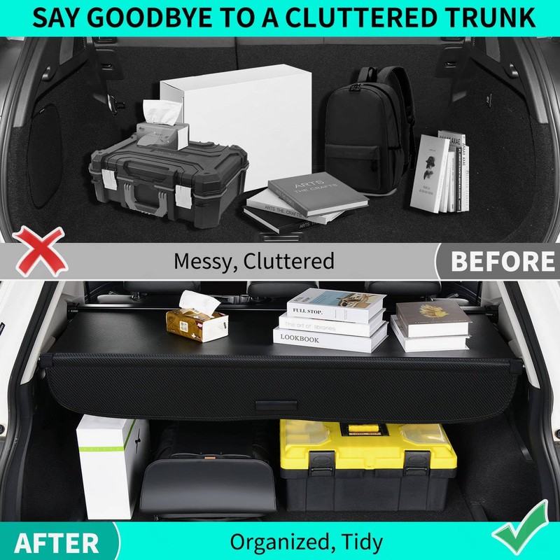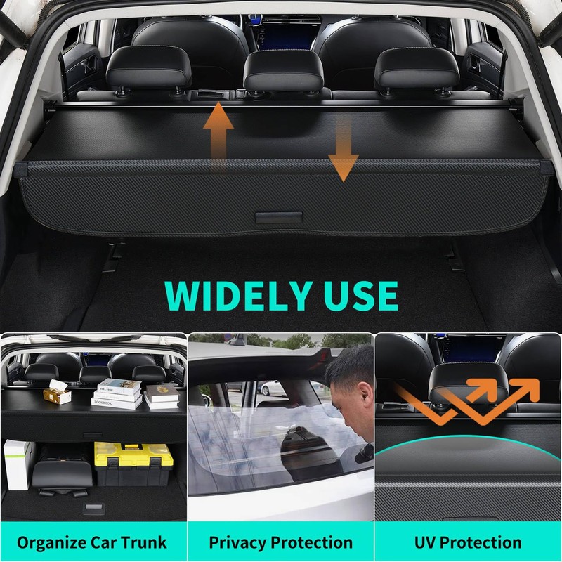 - Enhanced Privacy & Security: Simplify discreet storage with the intuitive pull-handle retractable design. This cargo cover security shield transforms your trunk into a secure compartment, concealing valuables from view to deter theft and maintain complete privacy. The smooth-gliding mechanism ensures effortless operation with a single hand