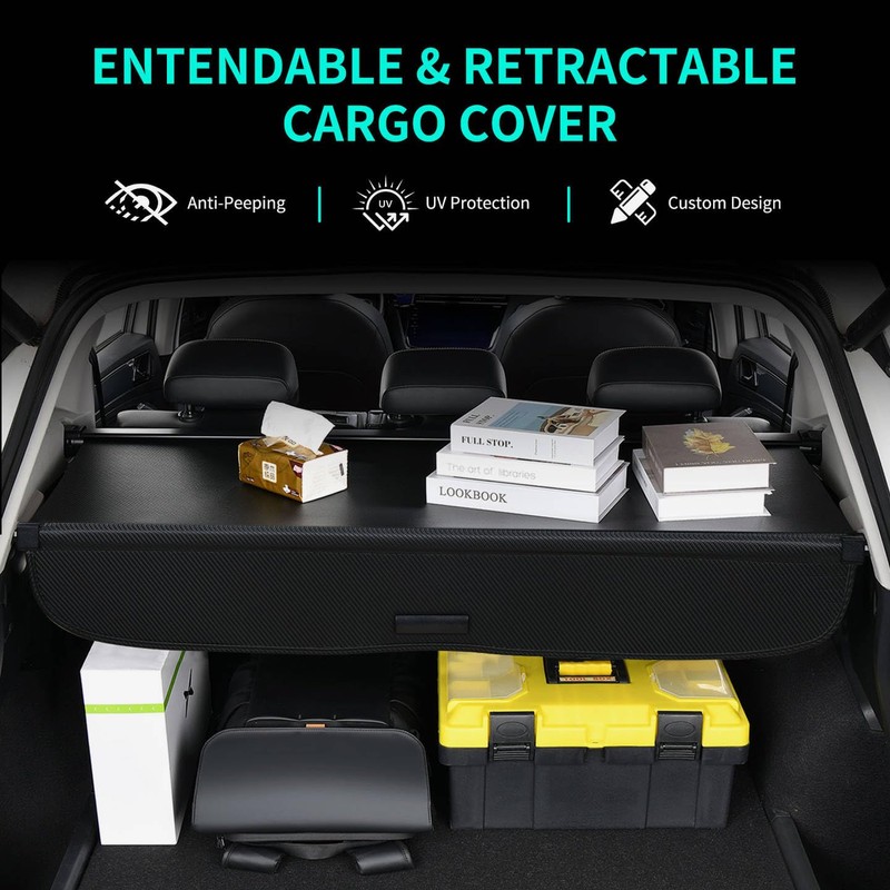 - Premium Durable Construction: Crafted from aerospace-grade aluminum alloy with a sleek carbon fiber finish, our cargo cover delivers exceptional waterproofing and tear-resistant performance. Its reinforced construction withstands daily wear while maintaining lightweight portability, engineered for long-lasting reliability in all conditions