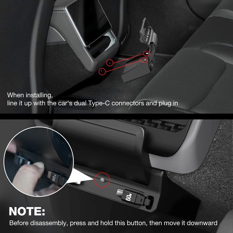 - Easy Installation:The car charger is effortless to install or remove. The Tesla rear vent extension base features a honeycomb airflow design that maintains optimal air conditioning and ventilation performance after installation. (Product link includes detailed instructions and video for reference.)