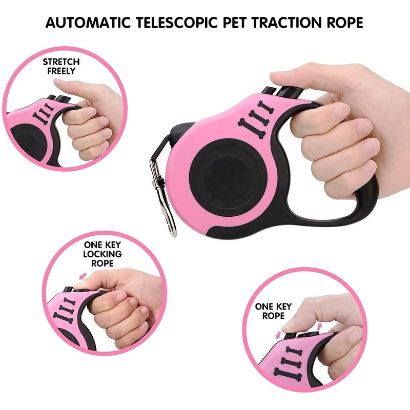- 【Long Leash】- Our Dog Lead is high extendable and reaches 5 metres in length at the max! This is an anti-tangle, nylon leash ribbon with 360-degree movement and allows your pet a high level of freedom whilst making sure they are under your control.