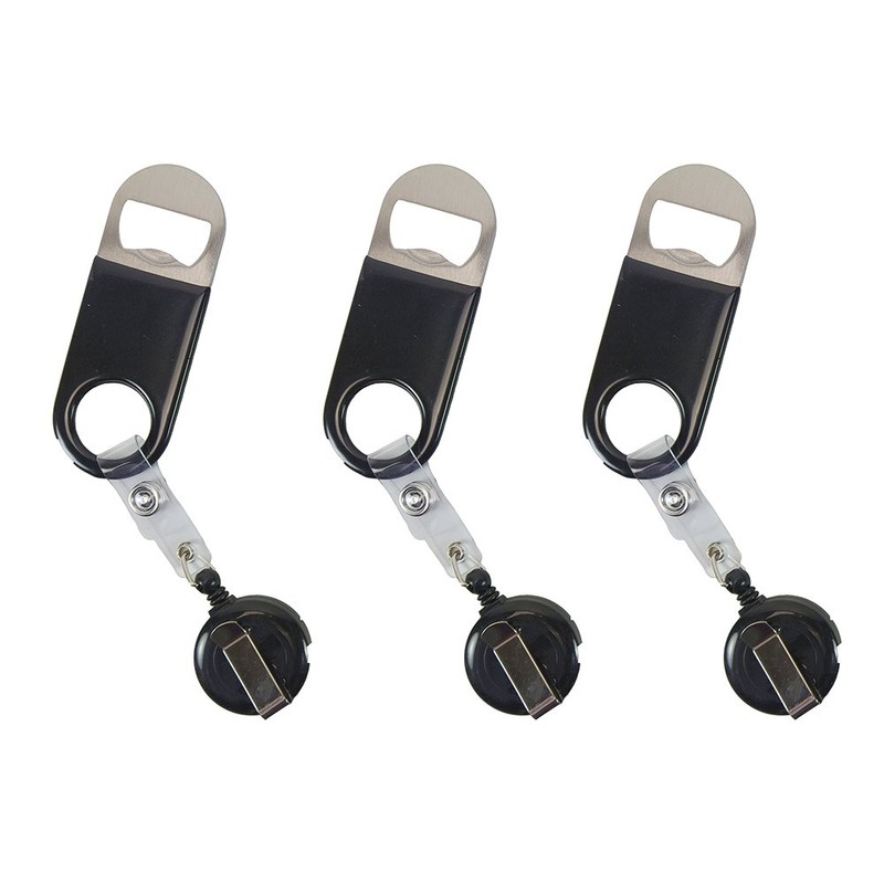 Retractable Flat Beer Bottle Opener with Belt Clip for Bartenders,Waiter (Black 3-Pack)