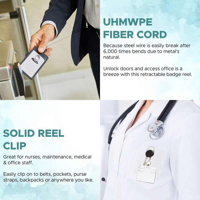 Retractable ID Badge Holder – 8 Pack – Heavy-Duty Double 2 String – Premium Key Holder Clip – Ideal Keychain with Badge Reel – Perfect for Medics, Drivers, Students, Black