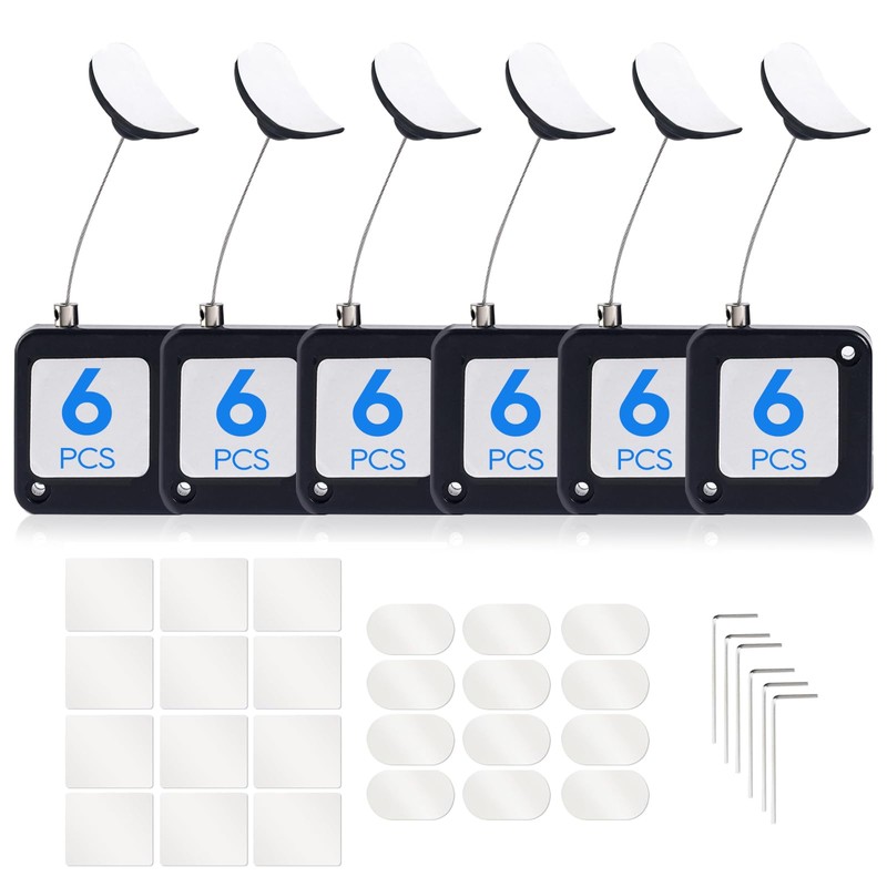 Retractable Remote Control Tether Lock: 6.5 ft Upgraded Pulling Force Security Lanyard Lock with Adjustable Cable Leash Length Clasp for TV Remote Control, Gaming Controller, Tablets Showroom (6 PCS)