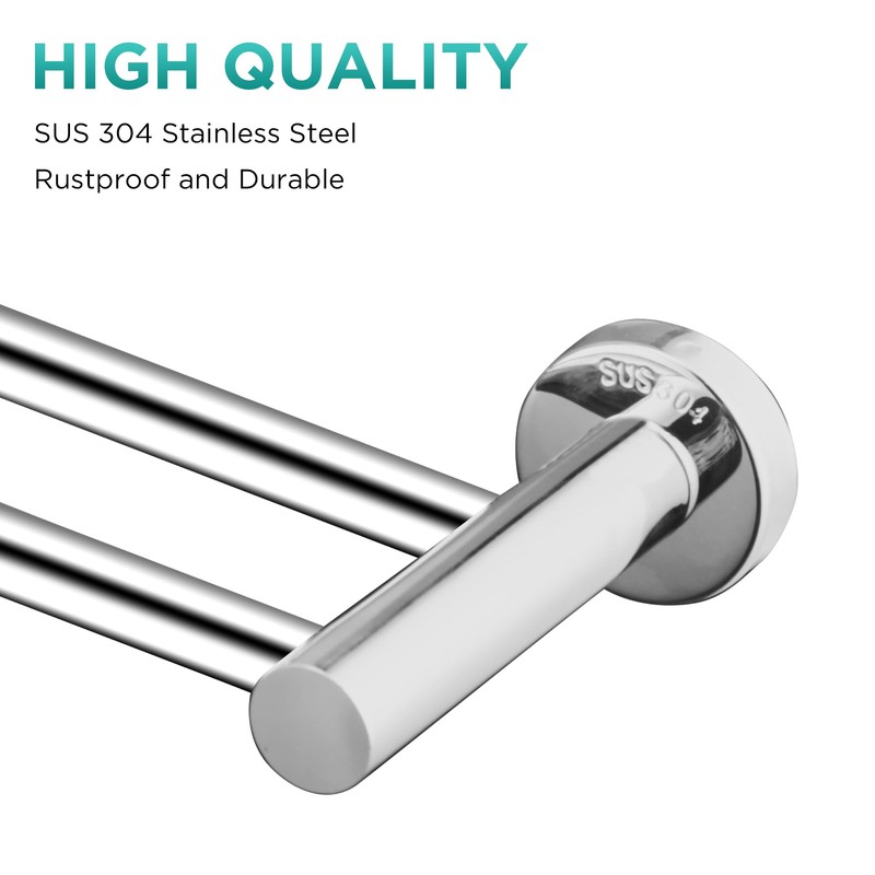 - Durable Material: This flat double bath towel holder is constructed of high-quality SUS304 stainless steel to protect against corrosion and rust. Polished chrome finish, looks nice and easy to clean and maintain, It can be used for a long time even in humid environments.