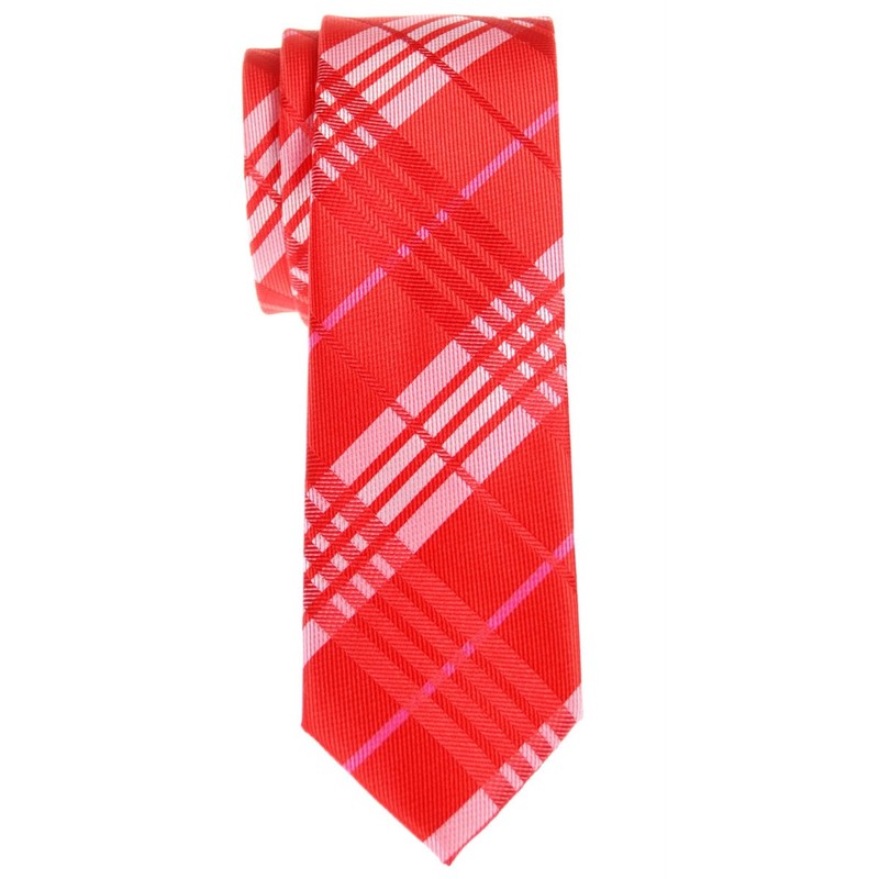 (リトリーズ) RETREEZ スタイリッシュ タータンチェック 織布 マイクロファイバー スキニー ネクタイ - レッド