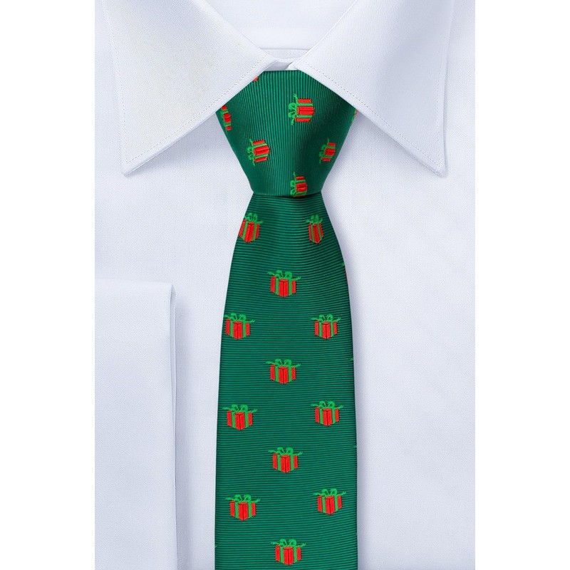 Retreez Christmas Graphic Woven Microfiber Skinny Tie - Green