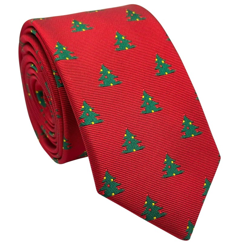 Retreez Delightful Christmas Tree Pattern Woven Microfiber 2.4" Skinny Tie - Red
