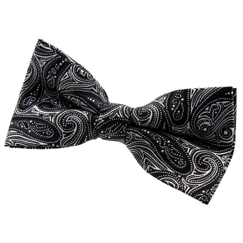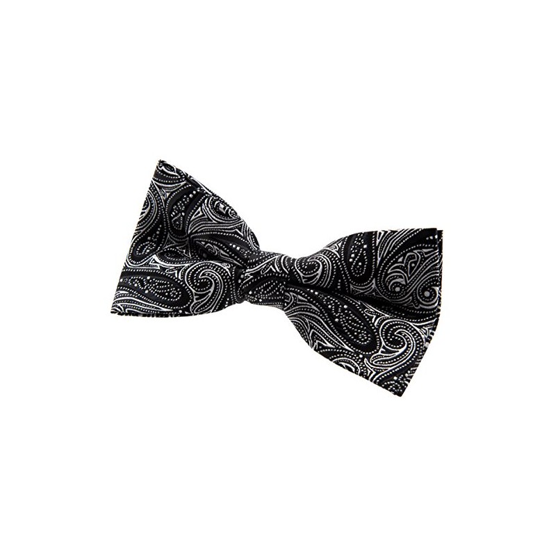 Retreez Men Elegant Paisley Art Pattern Woven Microfiber Pre-tied Bow Tie (5") - Black