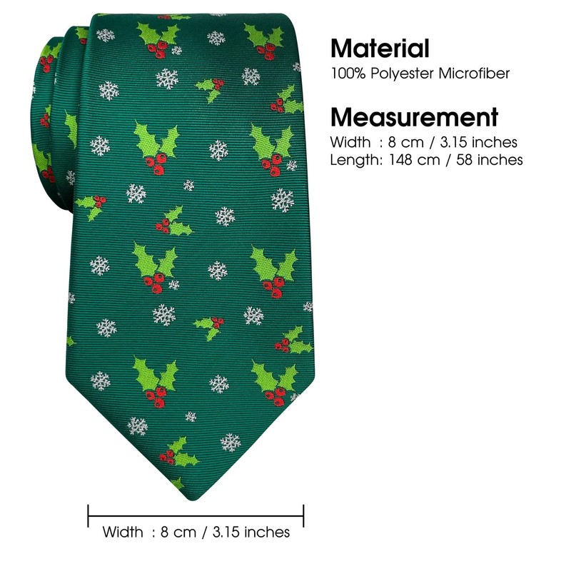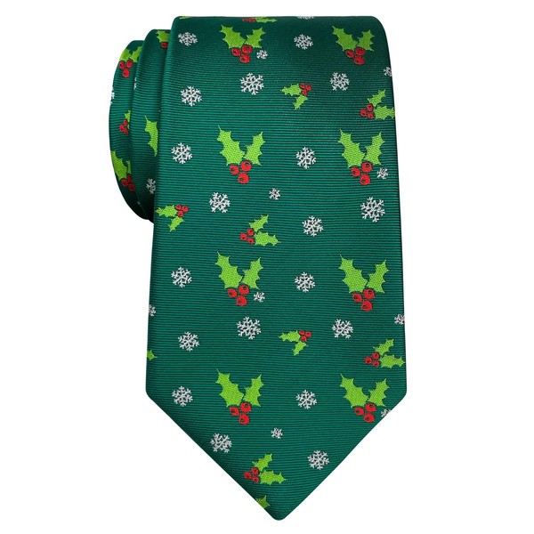 Retreez Men's Woven Christmas Tie Holly Leaves 8 cm -