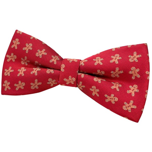 Retreez Men Woven Pre-tied Bow Tie Christmas Ginger Bread Man 11.5 cm - red