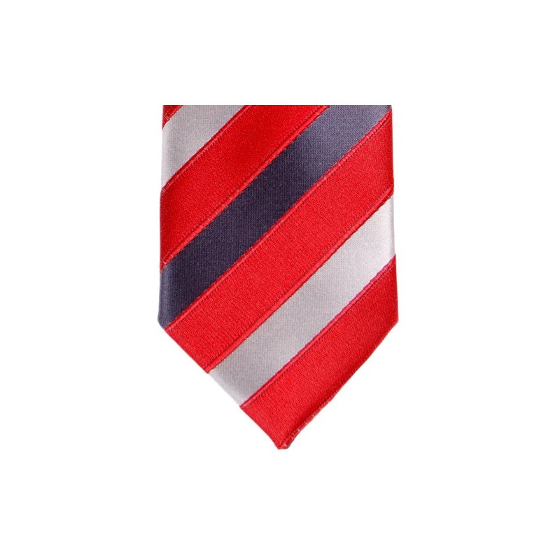 Retreez Three-Colour Stripe Woven Microfiber Skinny Tie - Red and Grey