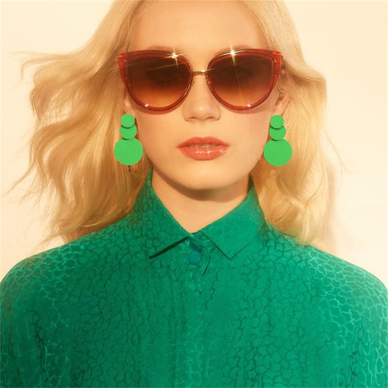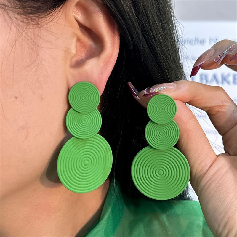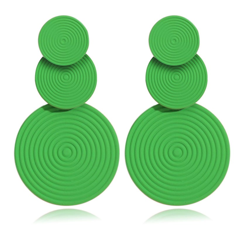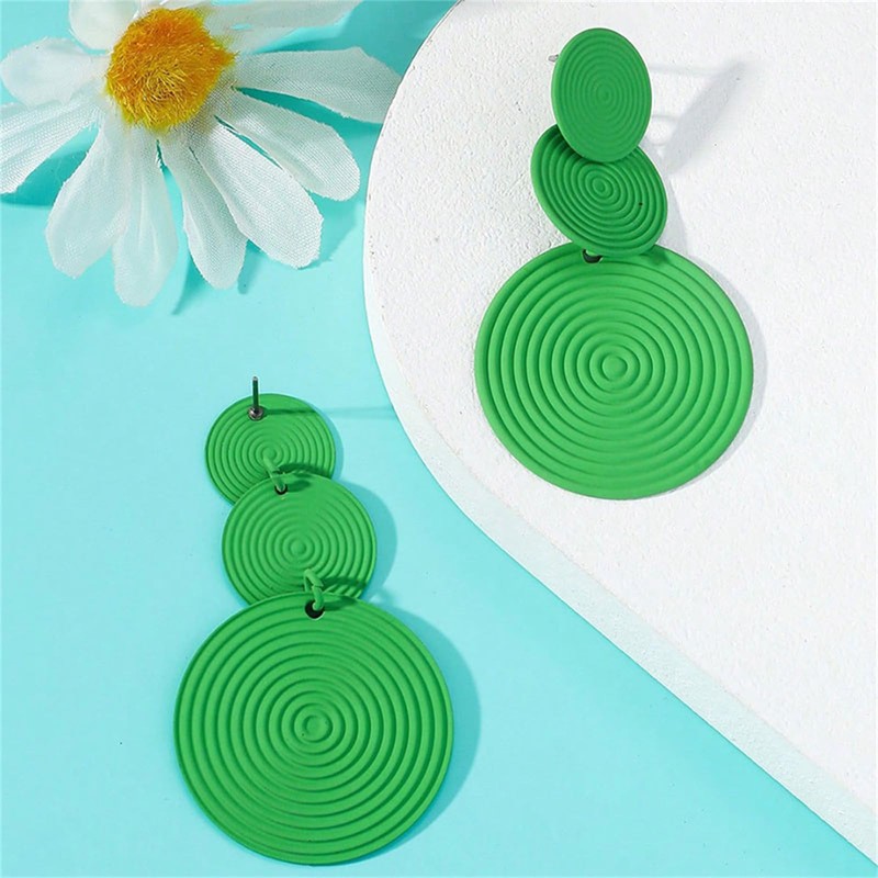 Retro 80s Neon Earrings Round Disc Dangle Drop Earrings for Women Lightweight Bohemia Statement Geometric Round Earrings Fashion Accessories 80s Jewelry Costume Party (Green)