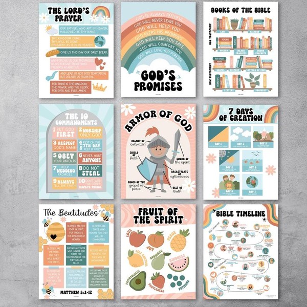 Retro Bible Posters| Set of 9 | Sunday School Classroom