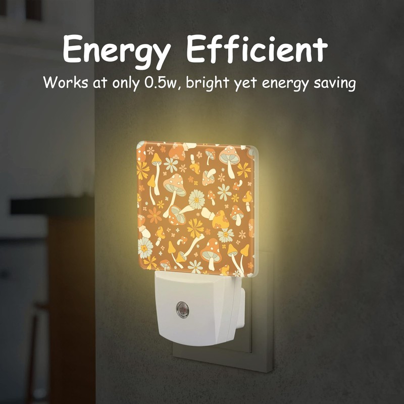 - 【Dusk to Dawn Sensor】This Retro Cartoon Mushrooms night light plug wall is equipped with a light sensor that automatically turns on at dusk or dim light and turns off at dawn or when there is sufficient light.Its smart design saves power and eliminates the need for manual switching
