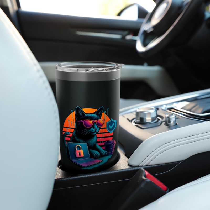 Retro Cat With Security Network Skills Cybersecurity Analyst Stainless Steel Insulated Tumbler