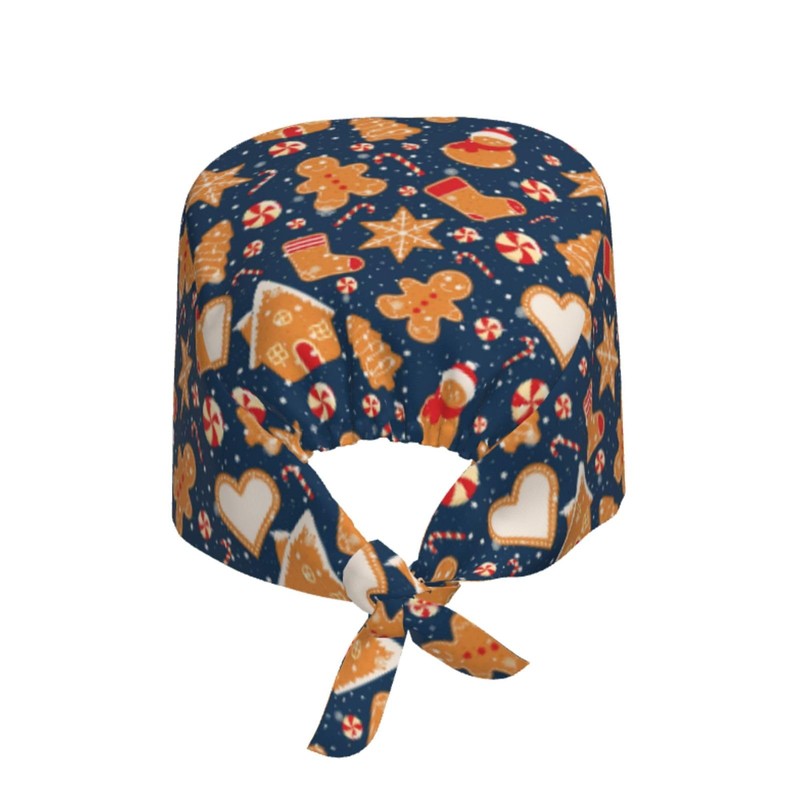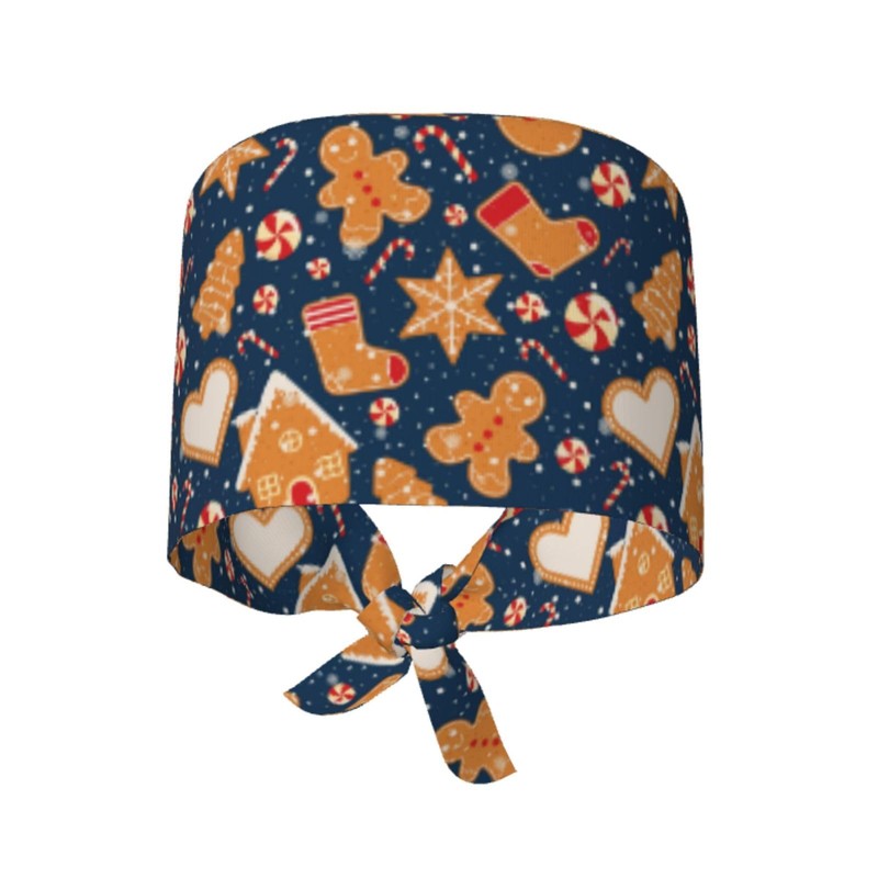 Retro Christmas Pattern Cleaning Working Cap with Sweatband for Women Men, Adjustable Tie Back Scrub Cap Work Beanie Hats