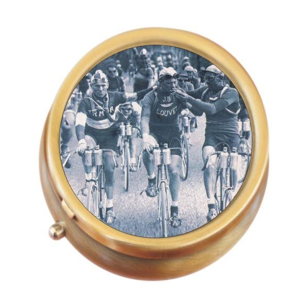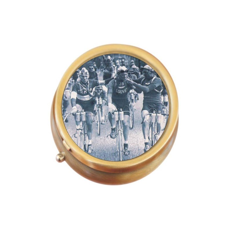 Retro Cyclists Brass Round Pill Box