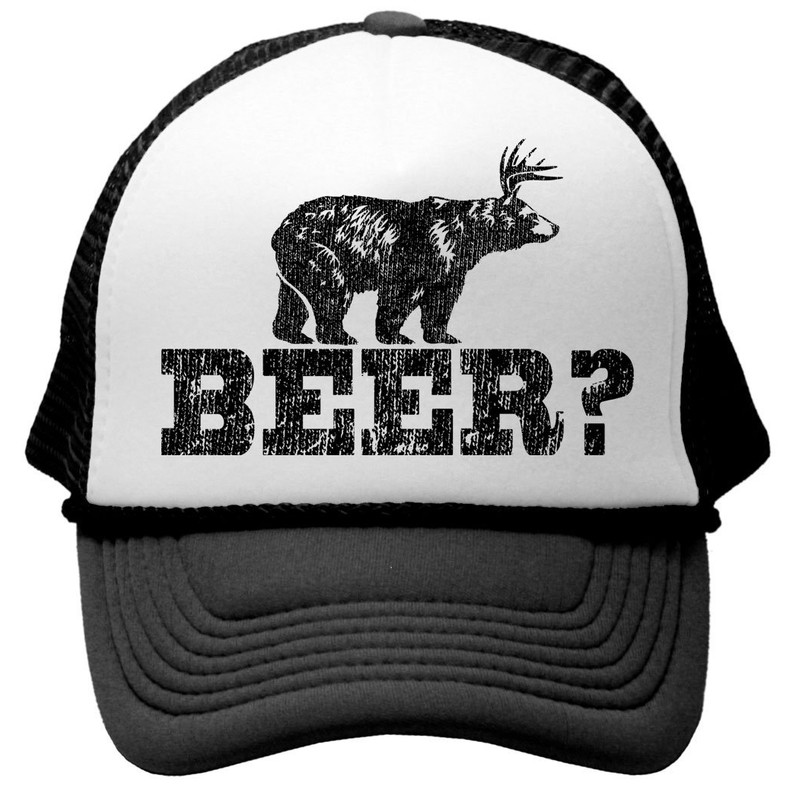 Retro Deer Beer Bear - Funny Party Joke - Vintage Retro Style Trucker Cap Hat (Black)