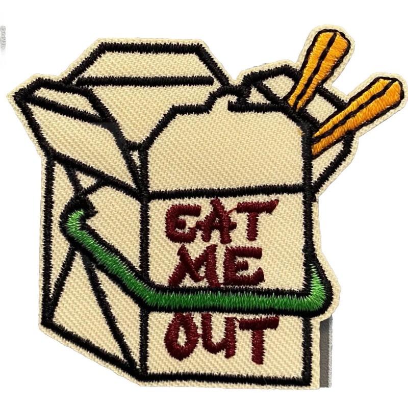 Retro Eat Me Out Take Out Food Funny 3in Patch Iron / Sew-On