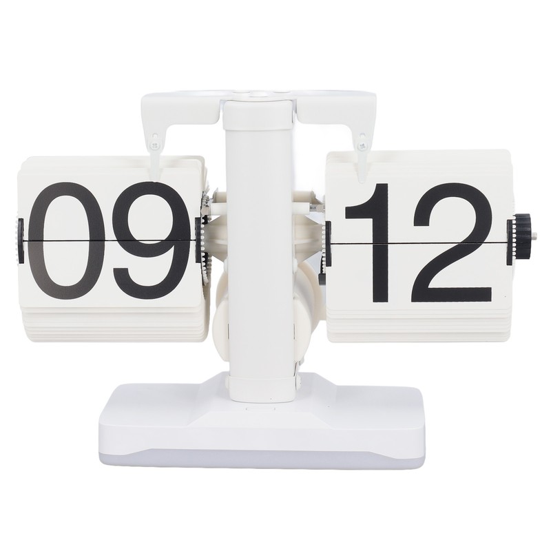 Retro Flip Down Clock Innovative Light Luxury Simple Design Flip Clock with Ambient Lighting for Bedroom Bedside Home 24 Hour Model All White
