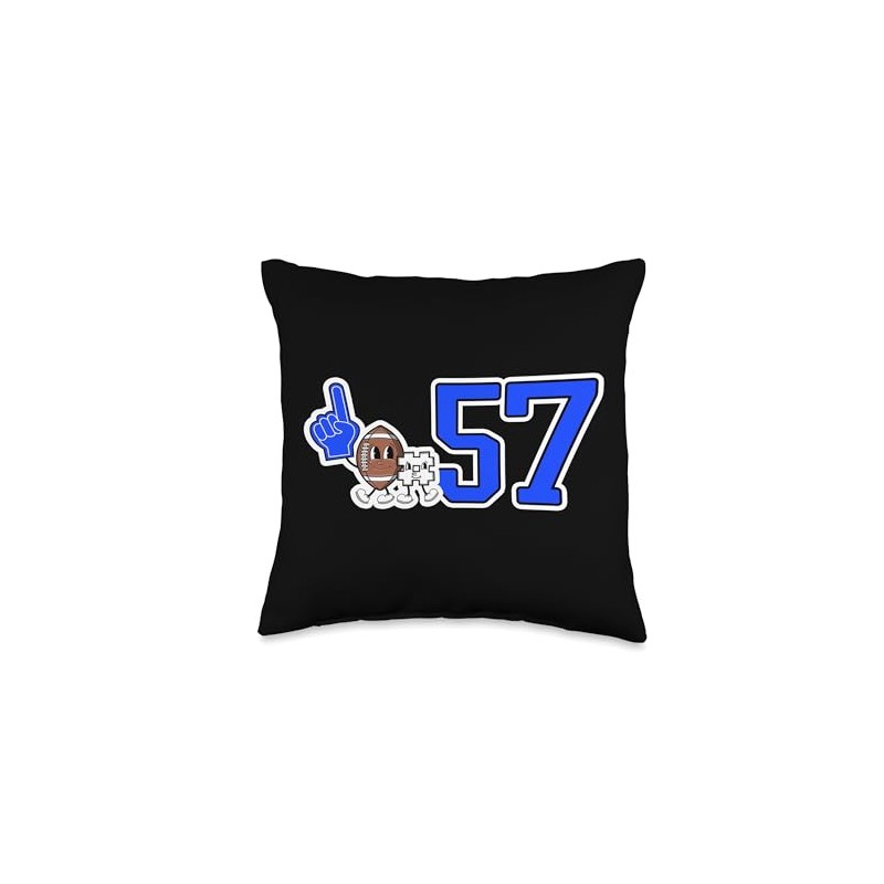 - This cool retro football player design features a cute cartoon football wearing a blue foam finger standing next to the #57