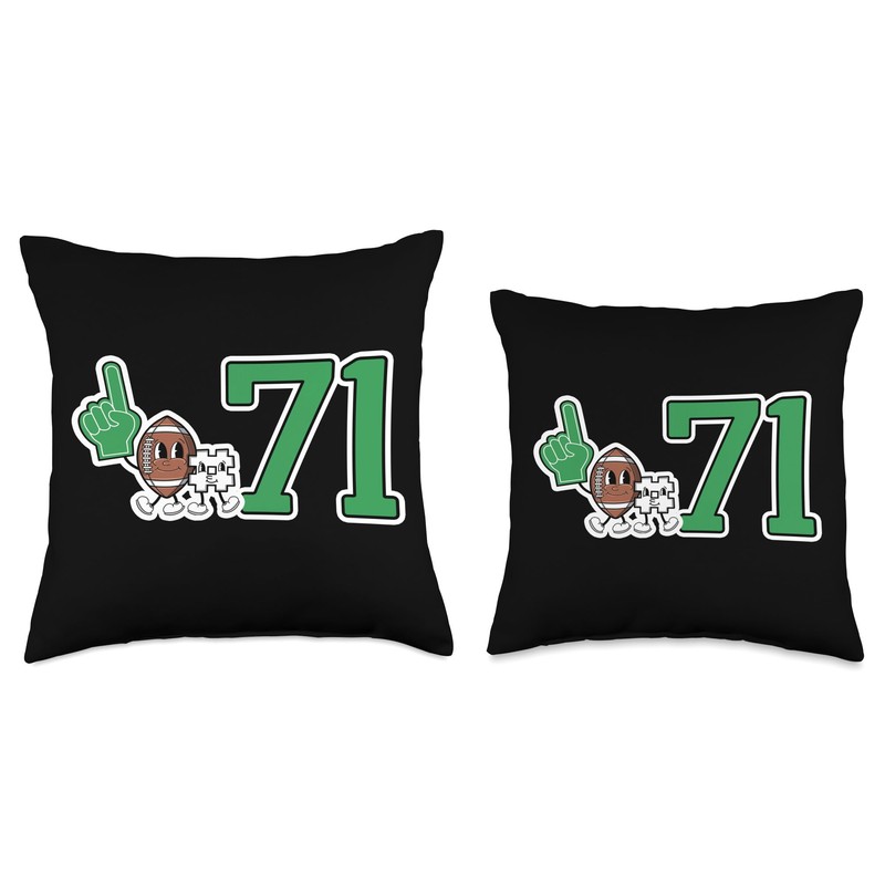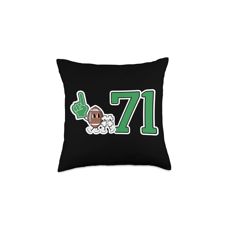 - This cool retro football player design features a cute cartoon football wearing a green foam finger standing next to the #71