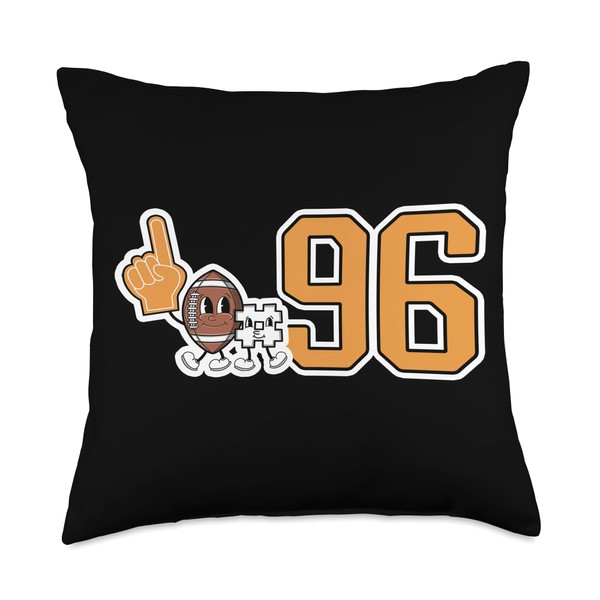 - This cool retro football player design features a cute cartoon football wearing an orange foam finger standing next to the #96