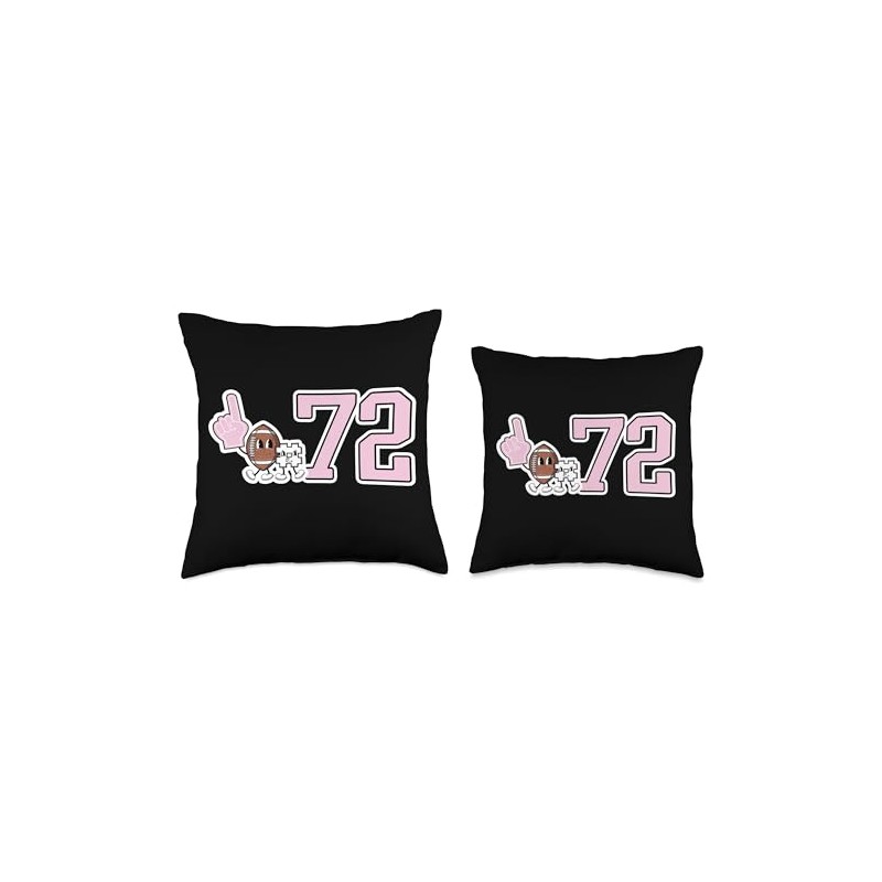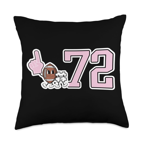 • This cool retro football player design features a cute cartoon football wearing a pink foam finger standing next to the #72
