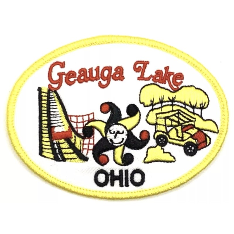 Geauga Lake Ohio Amusement Park Six Flags Vintage Style Patch. Patch measures 3 3/4 x 2 3/4 inches.