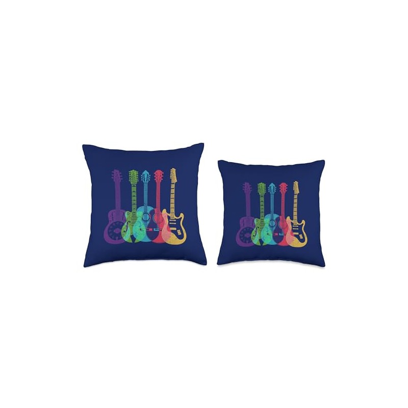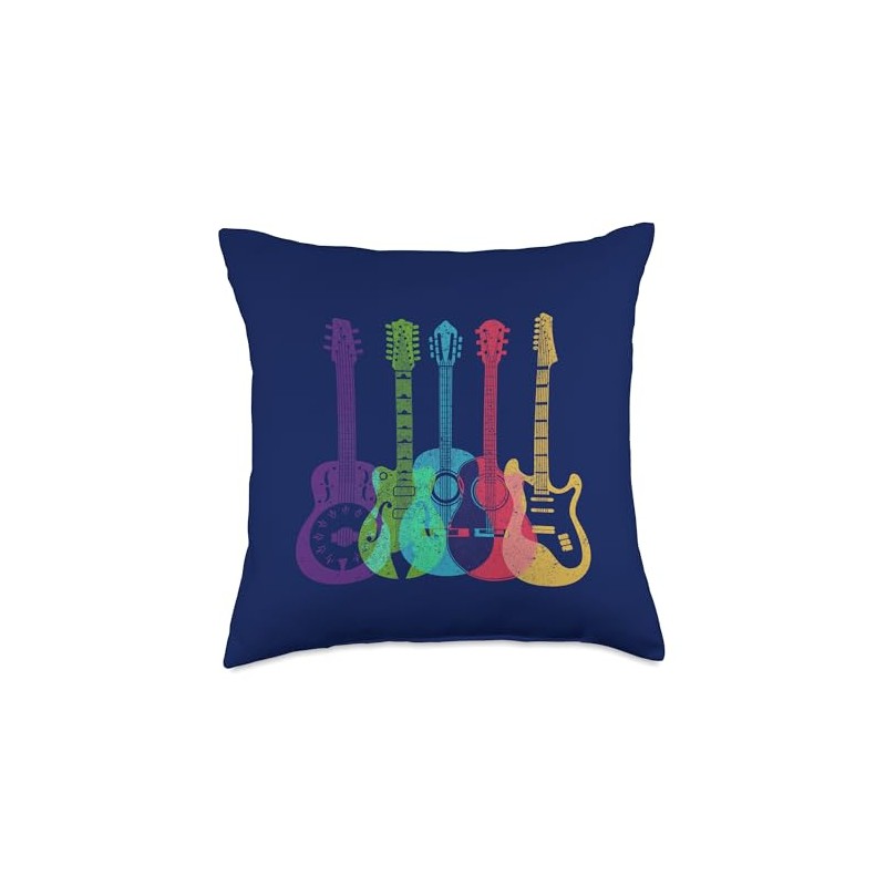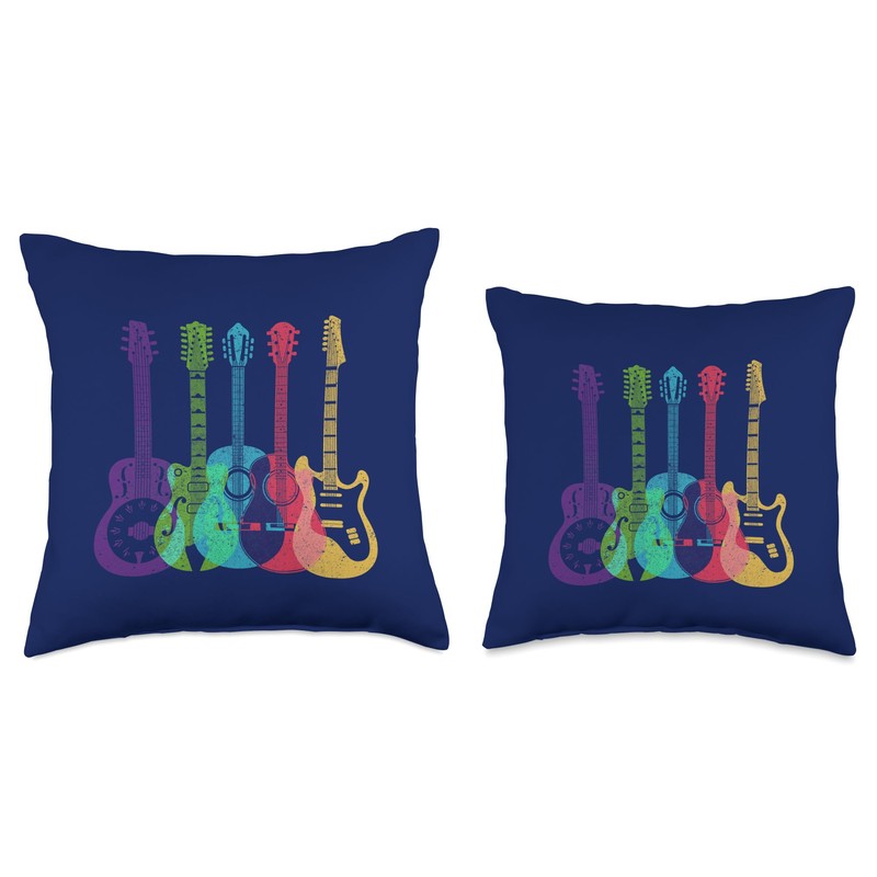 Retro Guitar Rock N Roll Musical Instruments Throw Pillow